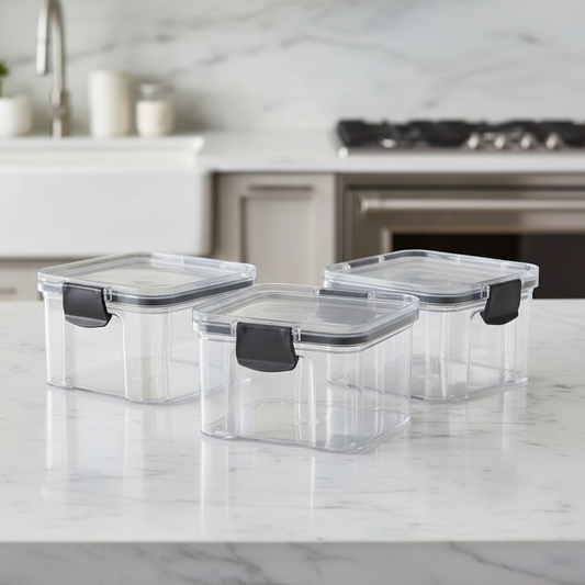 Kit 3 Potes Herméticos Quadrado 460ml com Tampa com Trava